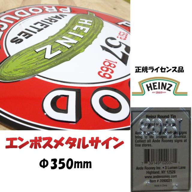 ハインツのロゴとピクルスがデザインされた珍しいデザインのエンボスプレートです。