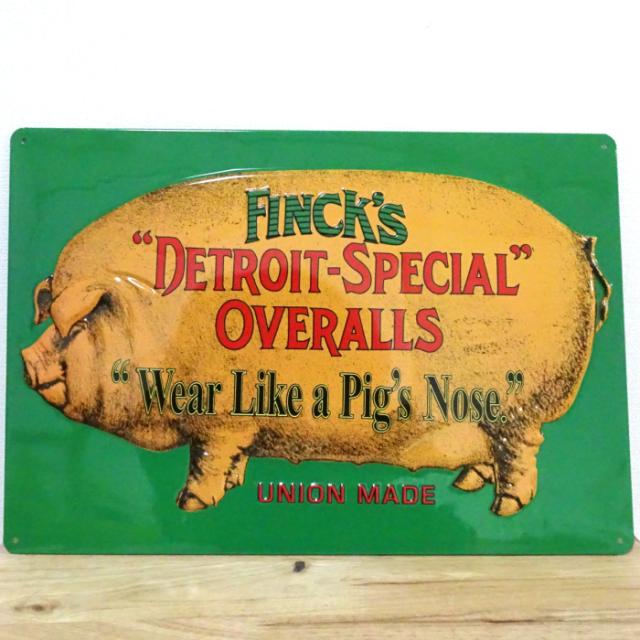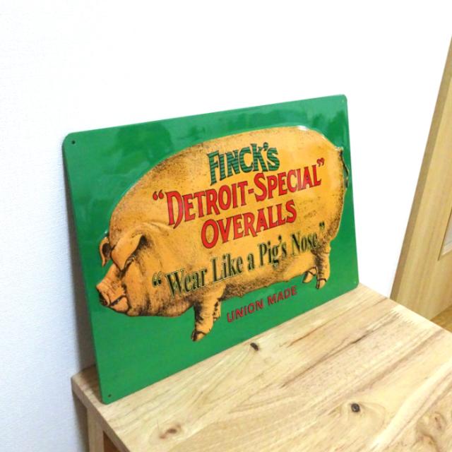 ブリキ看板 FINCK’S GREEN エンボスメタルプレート アンティーク ガレージ グリーン ブタ 目立つ プレート 壁飾り 正規ライセンス品 アメリカン 雑貨 インテリア おしゃれ 可愛い サーファー カフェ 店舗