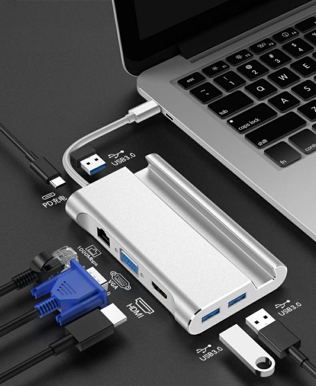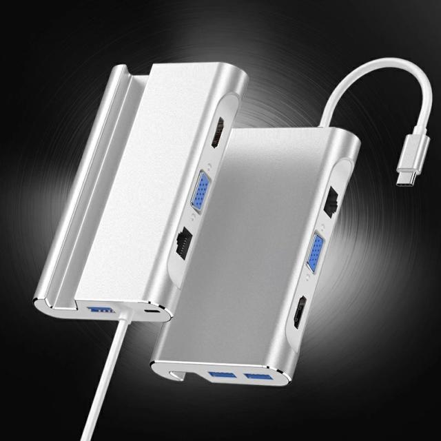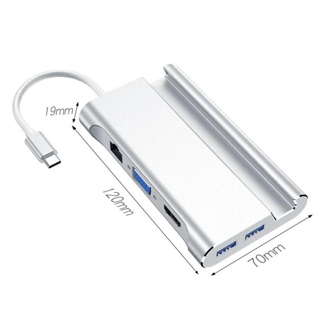 【送料無料】USB Type-C ハブ VGA HDMI LAN 対応 Type-C 7in1 USBハブ Type-C Hub 高速USB 3.0ポート / USB-C 充電ポート / VGA/ HDMI / 有線LAN/スタンド