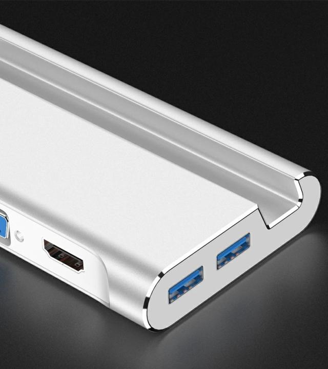 usb c hubコンパクトで、持ち運びも便利!アルミニウム合金製、優れた放熱性を持ち、ハブ動作する場合、充電する場合、HDMIとVGAを接続する場合、ハブ本体は熱くなる状況は正常です(0℃-70℃)。
