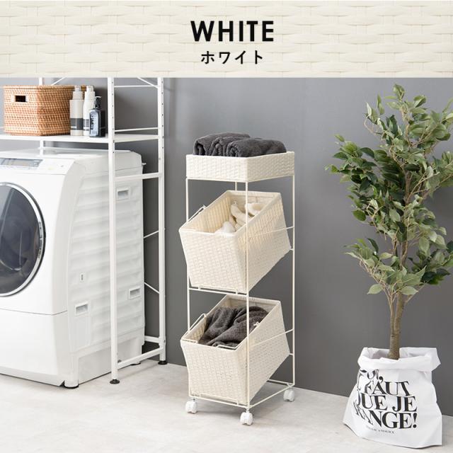 HAGIHARA(萩原) ランドリーラック(ホワイト・幅28×奥行45×高さ103cm)バスケット2個タイプ RAN-2425WH返品種別A