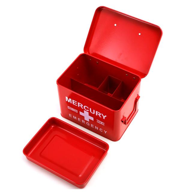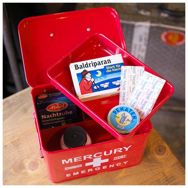 マーキュリー 雑貨 通販 救急箱 おしゃれ 大容量 かわいい MERCURY エマージェンシーボックス スチール 薬 衛生用品 小物 整理 収納 収納ケース 収納ボックス 薬箱 薬入れ メイクボックス 男前 アメリカン雑貨