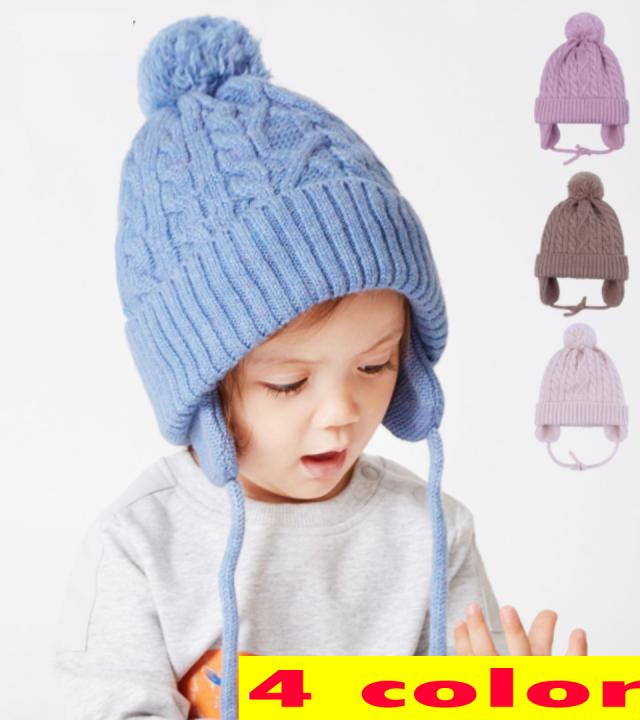 送料無料!暖かい♪ ベビーニット帽 赤ちゃん 女の子 男の子 耳保護付き 綿 無地 柔らかい かわいい 防風・防寒・保温
