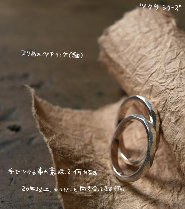スリめのペアリング(細) メンズ レディース ハンドメイド オーダー シルバー ヤスリ目 シンプル 上品 おしゃれ 指輪 Silver 950 マモる 手作り 手づくり ダイヤモンド(tkr008pair)