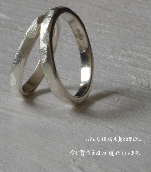 スリめのペアリング 細 2本セット メンズ レディース ハンドメイド オーダー シルバー ヤスリ目 シンプル 上品 おしゃれ 指輪 Silver 950 マモる 手作り 手づくり ダイヤモンド tkr008pair