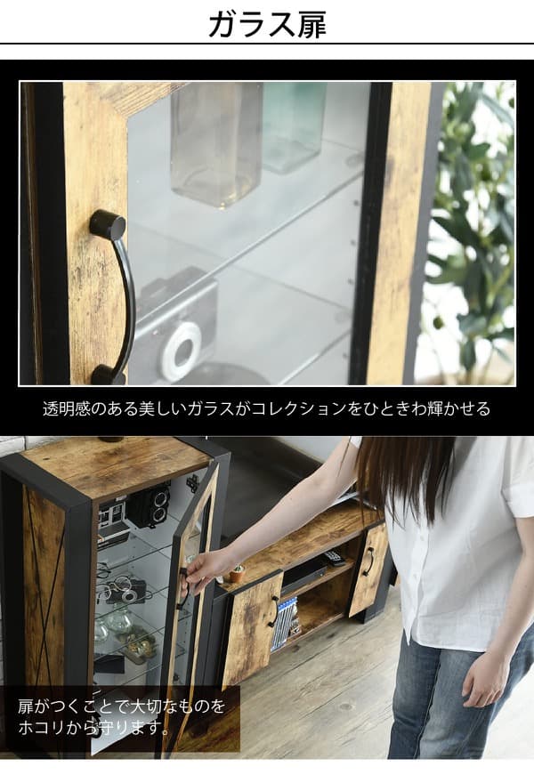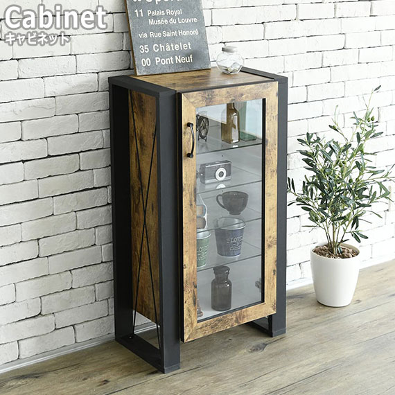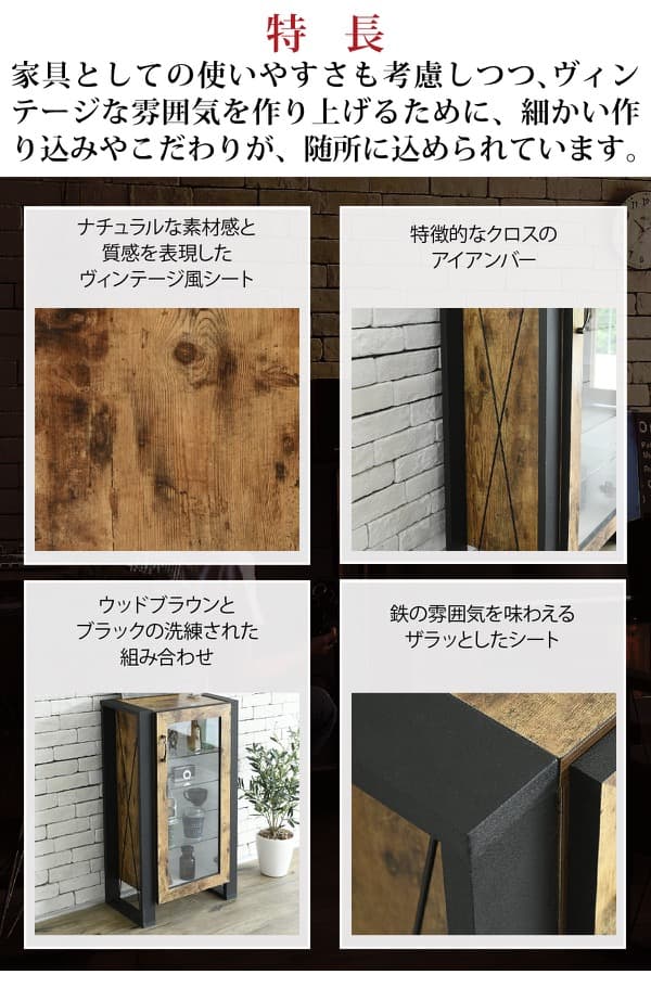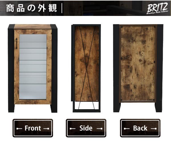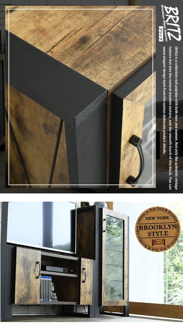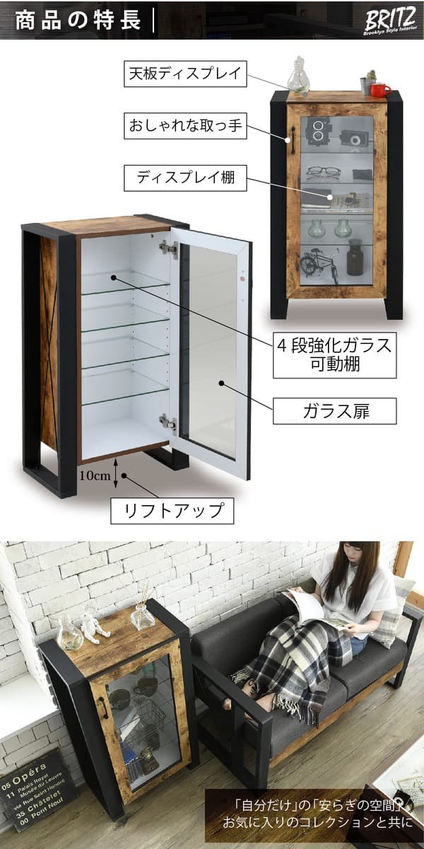 BrooklynStyle ブルックリンスタイル キャビネット (キャビネット ディスプレイ棚 天板 ガラス扉 強化ガラス 4段 リフトアップ ヴィンテージ ブルックリンスタイル ブリッツ 古いレンガ レトロな倉庫 クール おしゃれ おすすめ)