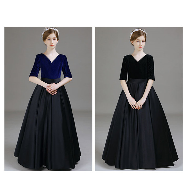 【送料無料】キッズドレス ピアノ 半袖 ドレス 演奏会 結婚式 ネイビー 高品質 キッズフォーマル ロング丈 子供ドレス発表会 コンクール こども パーティードレス 子供フォーマル 85cm 120/130/140/150/160cm