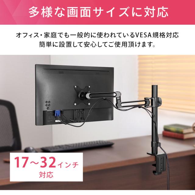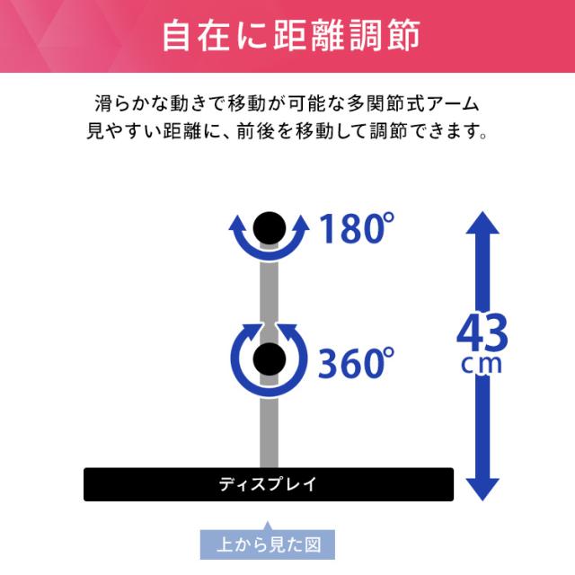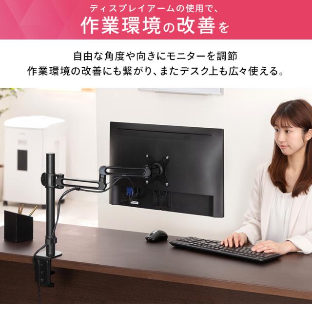 ディスプレイをデスクにしっかり固定できるディスプレイアームです。