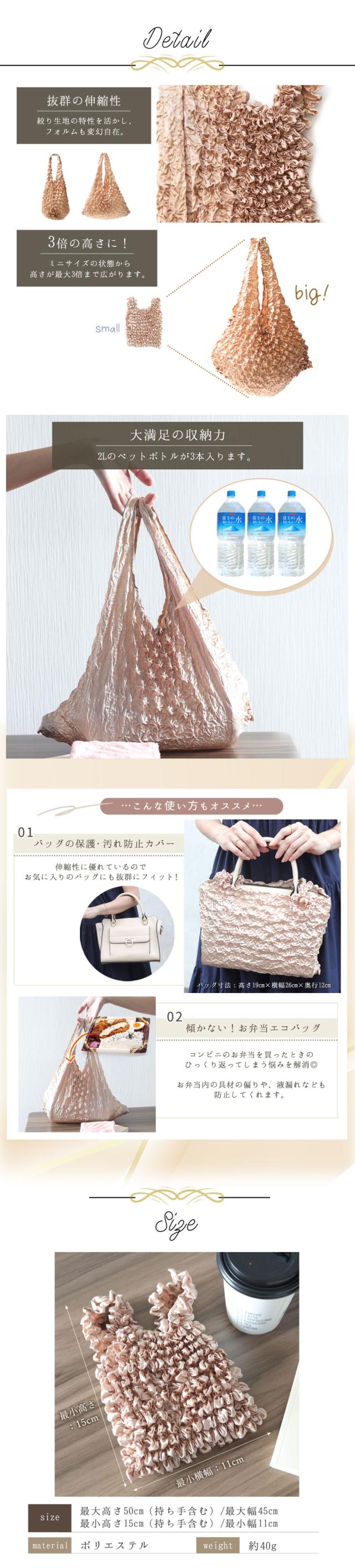 エコバッグ おしゃれ くしゅくしゅ バッグ 小さい 大容量 レジ袋 小さめ 伸びるエコバッグ サブバッグ 中学生 高校生 入学式 フォーマル 通勤 かわいい A4 オシャレ ミニ お弁当 トートバッグ カジュアル レディース 黒 軽量 絞り 伸びる 畳まない エコ プリーツ 大人 無地