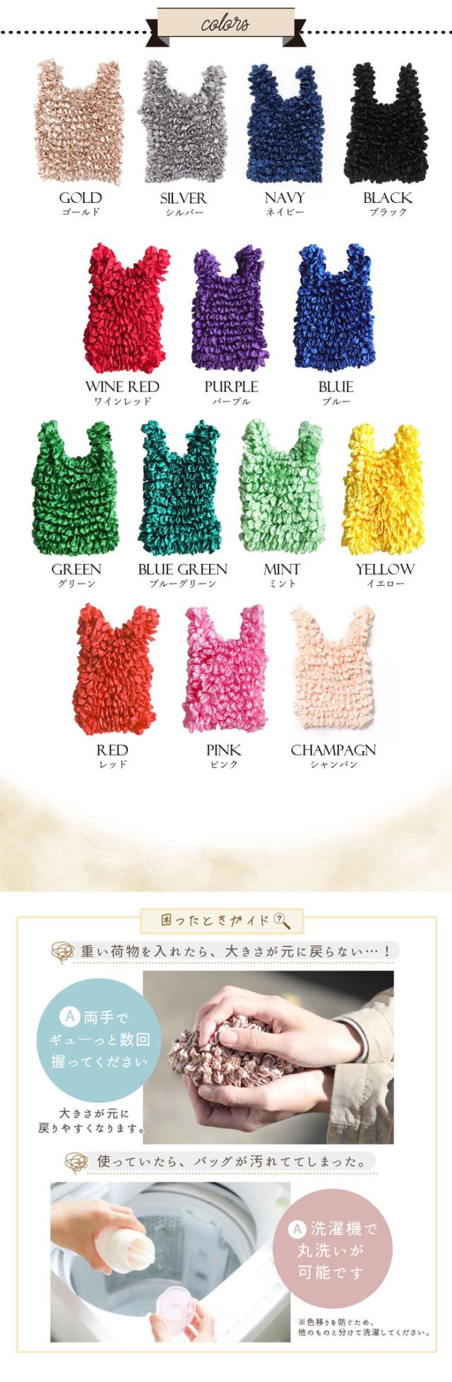 【バッグの中に彩りを。畳まず収納出来るプリーツエコバッグ/ハンドバッグ/サブバッグ】