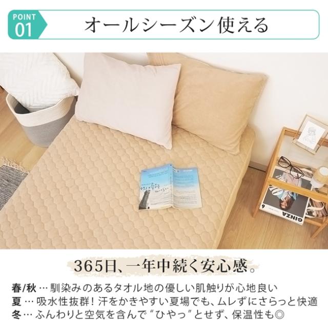 抗菌加工 タオル生地【敷きパッド/クイーン】160×200cm コットン パイル 綿100% 天然素材 吸水性 吸湿性 丸洗い 春 夏 秋 冬 敷パッド パッドシーツ 敷き布団 ベッド マットレス 送料無料