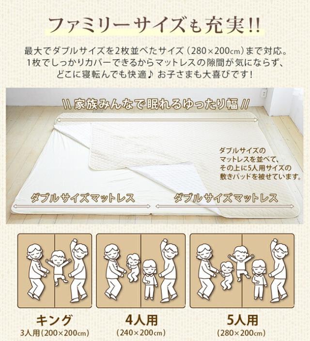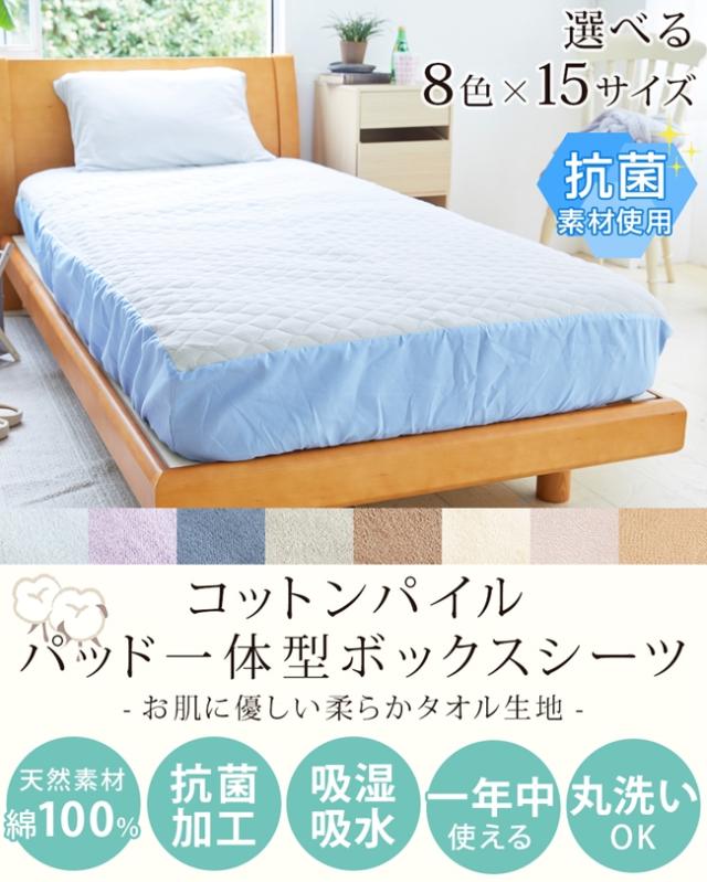 ボックスシーツ【パッド一体型ボックスシーツ/ファミリーサイズ 3人用 キング】200×200×30cm コットン パイル 綿100% 抗菌加工 天然素材 吸水性 丸洗い オールシーズン ベッドシーツ 敷きパッド パッドシーツ 送料無料