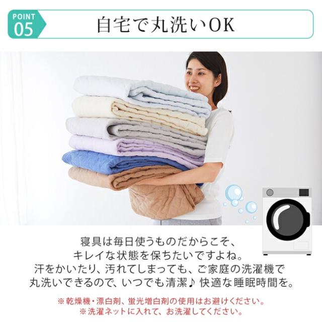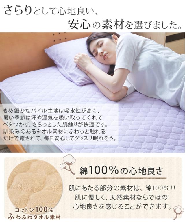 | 「365日、一年中安心できる素材」 さらりとして心地良い、安心の素材を選びました。 馴染みのあるタオル生地は、綿100%素材で肌触りがよく、吸水性にも優れています。 汗をかきやすい季節でも蒸れずにさらっと快適! 冬でもふんわりと空気を含んでくれるから、ひやっとせず保温性も◎ 天然素材ならではの心地良さで、毎日安心してグッスリ眠れます。 |