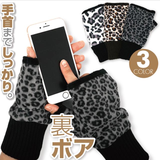 ハンドウォーマー アームウォーマー メンズ モコモコ 指なし手袋 暖かい スマホ おしゃれ ふわモコ 裏ボア レオパード ヒョウ柄 全3色