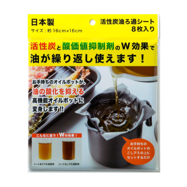 活性炭油ろ過シート 8枚入り ( オイルポット用 油こし 油 交換フィルター 活性炭 酸化価抑制剤 活性炭カートリッジ 8枚 日本製 油濾し 油濾過 ろ過シート ろ過 濾過 交換カートリッジ 再利用 )