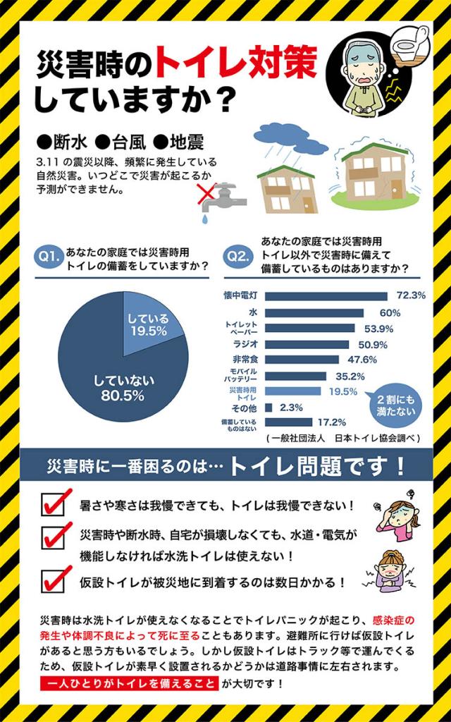●凝固剤で固めて、手を汚さず汚物処理で断水時のトイレにも使えます。