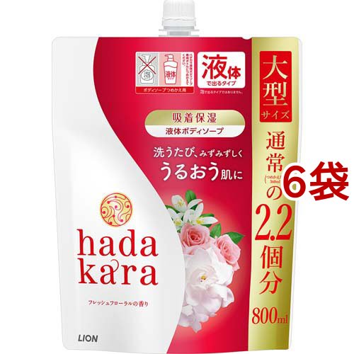 ハダカラ ボディソープ 液体 フレッシュフローラルの香り 詰め替え大型(800ml*6袋セット)[ボディソープ]