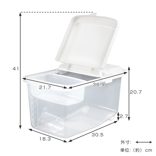 | 材質 | 本体・フタ・スライドポケット:ポリプロピレン キャスター・止め具・ライスカップ:スチロール樹脂 |