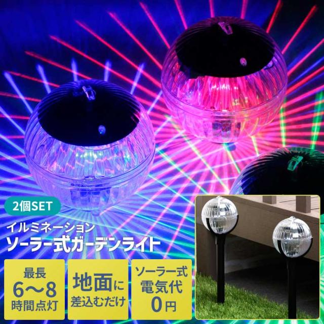 ソーラー式イルミネーションガーデンライト 2個組 ソーラーライト 屋外照明 埋め込み エクステリア 玄関 庭 屋外 省エネ エコ センサー 自動点灯 消灯 太陽光 明るい おしゃれ ライトアップ セーブインダストリー