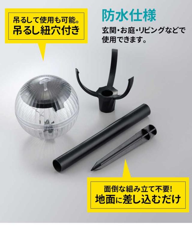 ●防水仕様で玄関、お庭、リビングで使用できます。吊るし紐穴付きで吊るしてもご使用できます。