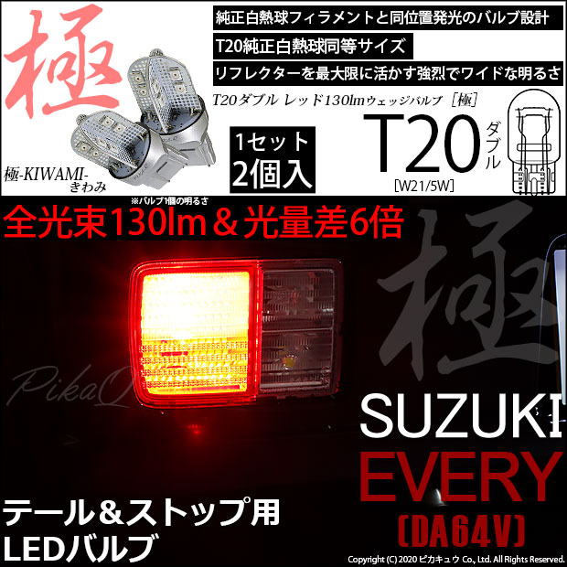 | ピカキュウ,LED専門店,LEDバルブ,国産DC12V車,LED,SMD,T20ダブル,W21/5W,スモール&ストッププ,レッド,全光束130lm,ハイブリッド車対応,極,KIWAMI,きわみ,スズキ,エブリィ,SUZUKI,EVERY,DA64V |