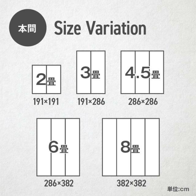 | サイズ | 本間6畳(約286×382cm) |