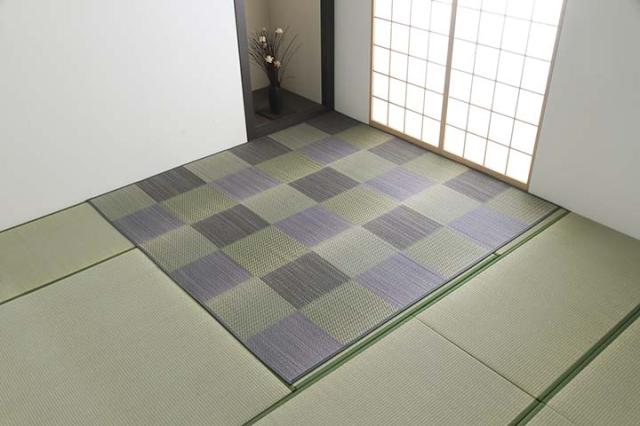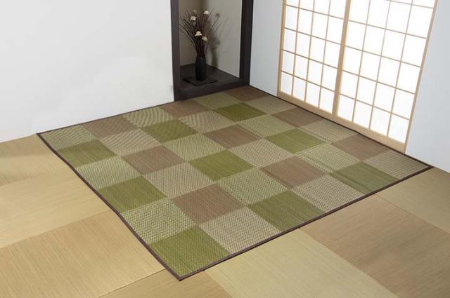 い草 ラグ カーペット 敷物 ピーア 本間6畳(約286×382cm) 長方形 イ草 ヒバ加工 市松柄 市松模様 格子柄 抗菌 防臭 夏 シンプル おしゃれ ブルー ブラウン グレー ikh【メーカー直送】