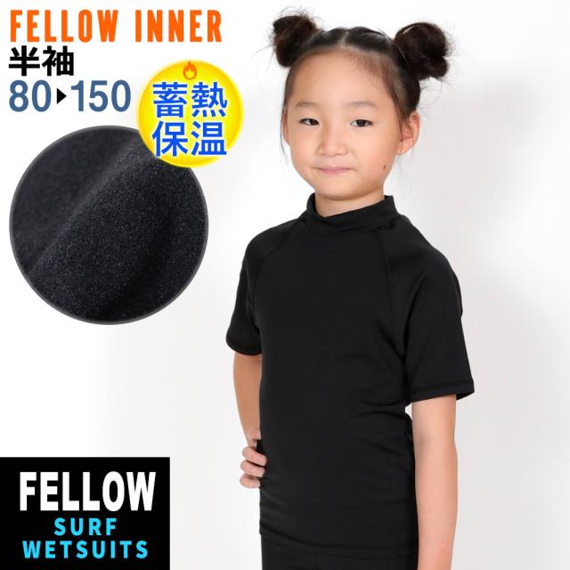 FELLOW ホットラッシュガード 保温インナー 半袖 キッズ 蓄熱 速乾 裏起毛 UPF50+ ウェットスーツ 保温インナー サーフィン