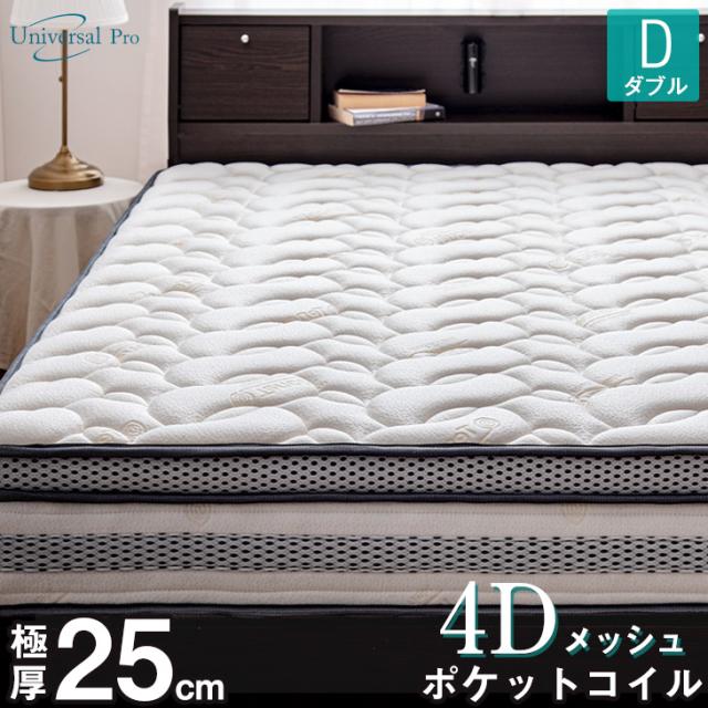 【正午〜P5%還元】 マットレス ダブル 極厚25cm ポケットコイル 高反発ピロートップ テンセル 超高密度コイル 通気性抜群 4Dメッシュ 調湿 ポケットコイルマットレス ベッドマット コイルマットレス 硬め コイル 快眠