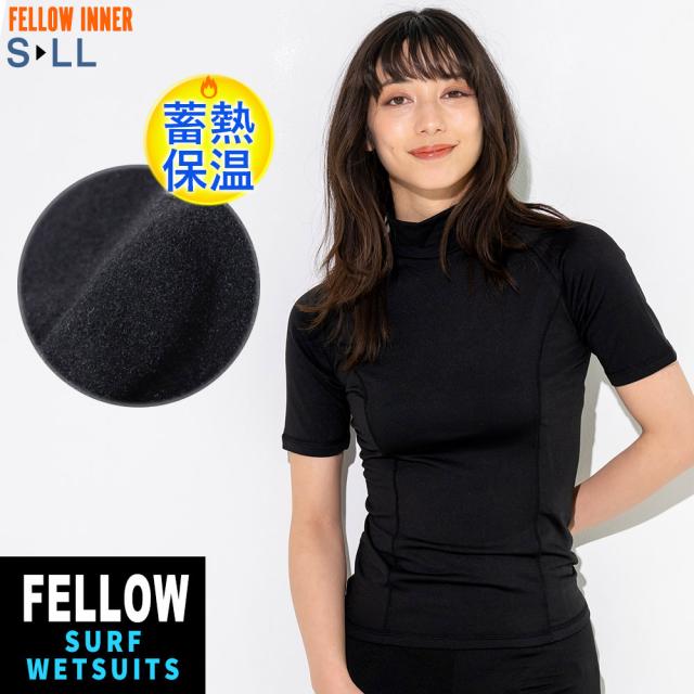 FELLOW ホットラッシュガード 半袖 レディース 蓄熱 速乾 裏起毛 UPF50+ ウェットスーツ 保温インナー サーフィン