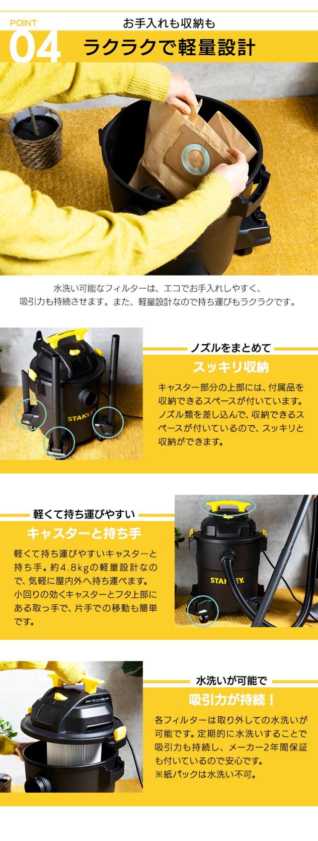 掃除機 クリーナー バキュームクリーナー スタンレーバキュームクリーナー SL18410P-6A 大掃除 業務用 業務用掃除機 ブロアー 乾湿両用 軽い パワフル 安定感 安全 多機能 大型キャスター 軽量 送料無料