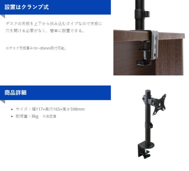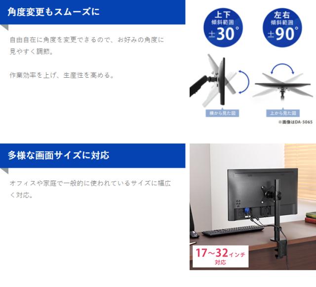モニター モニターアーム ディスプレイ ディスプレイアーム DA-1040 アイリスオーヤマ ブラック ディスプレー アーム 固定 台 デスク 在宅勤務 テレワーク 仕事 デスクワーク 送料無料