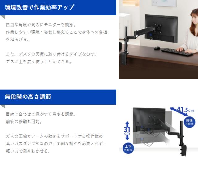 モニター モニターアーム ディスプレイ ディスプレイアーム DA-5065 アイリスオーヤマ ブラック ディスプレー アーム 固定 台 デスク 仕事 テレワーク 在宅勤務 送料無料