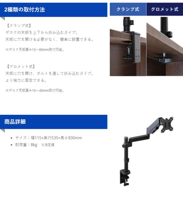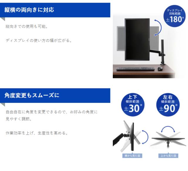 ディスプレイをデスクにしっかり固定できるディスプレイアームです。