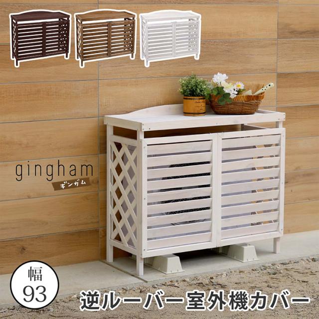 室外機カバー エアコンカバー 木製 逆ルーバータイプ 室外機カバー YB-04-N001 gingham(ギンガム) 3色対応 エアコン室外機カバー 目隠し 日よけ 雨よけ 室外機ラック おしゃれ 作業台 ベランダ 庭