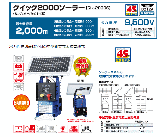 末松電子 電気柵 #128 クイック2000ソーラー (Qik-2000S) ミニゲッターパックS内蔵