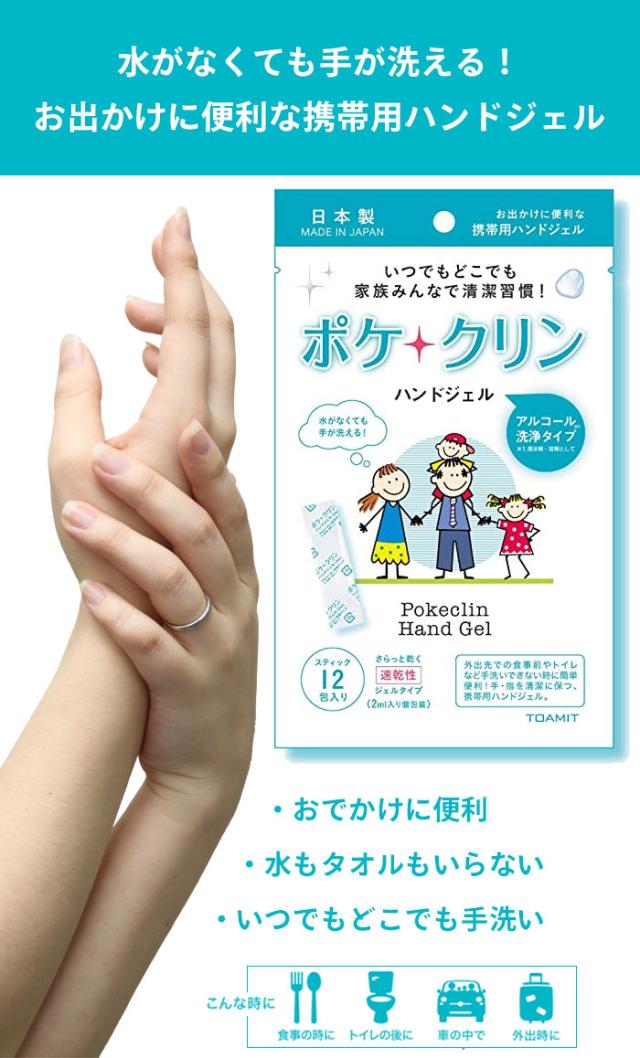 いつでも・どこでも水のないところで洗浄できる携帯用ハンドジェル。
