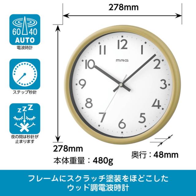 ノア精密 MAG マグ 電波掛時計 トルテ W-768 電波時計 掛け時計 アナログ 木目調フレーム 27.8cm シンプル 時計 時間【送料無料】