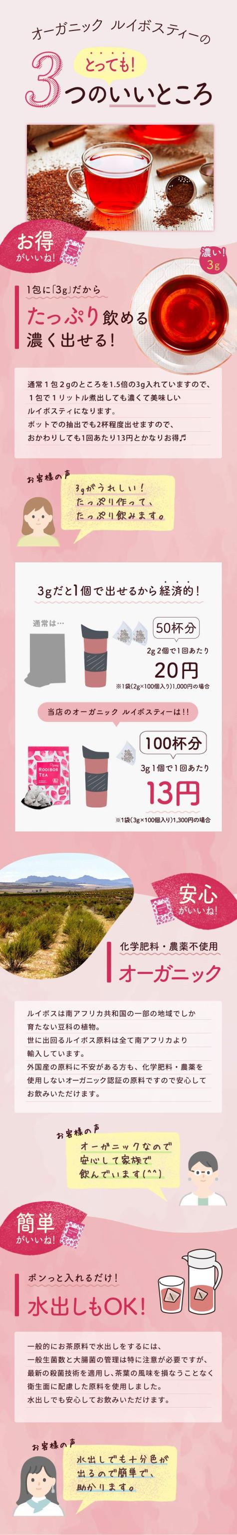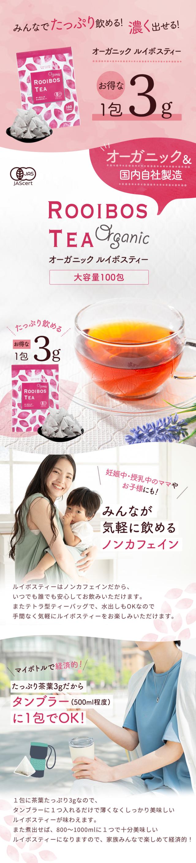 オーガニック ルイボスティー ティーバッグ (3g×100個入) 送料無料 大容量 100包 お徳用 ティーパック | ルイボス 妊活 妊婦 美容 健康茶 100 500 ギフト ノンカフェイン お茶 ノンカロリー ミネラル 3グラム オフィス 業務用 有機