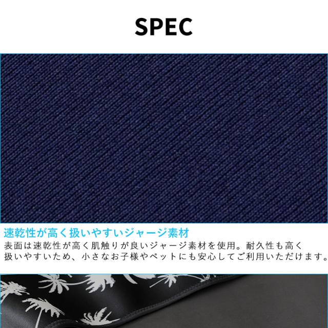 表面は速乾性と伸縮性が高いジャージ素材を採用。耐久性も高く小さなお子様やペットでも安心