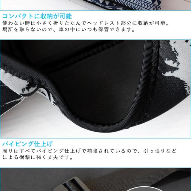 未使用時は小さく折りたたんでヘッドレスト部分に収納が可能。保管に便利!