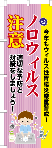 雑貨|販促グッズ|既製品のぼり商品名「のぼり旗 ノロウイルス注意3 既製品のぼり 高品質デザイン【メール便可】」