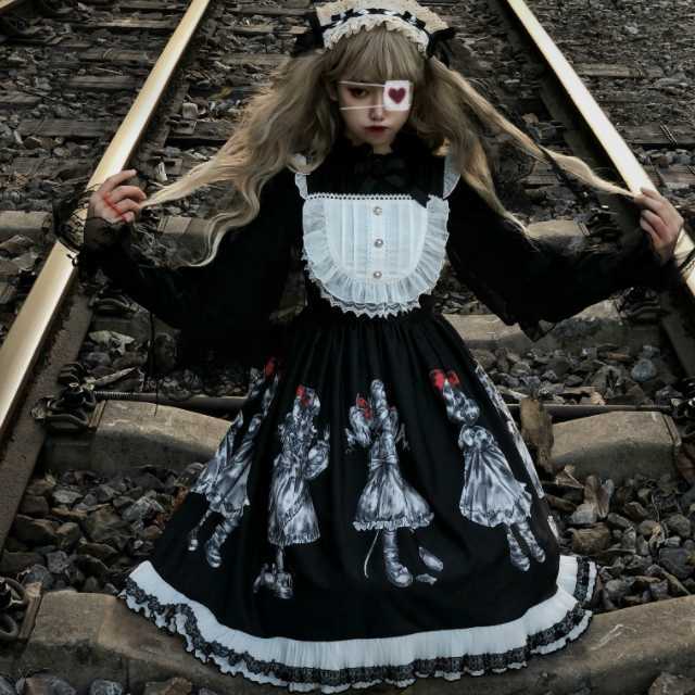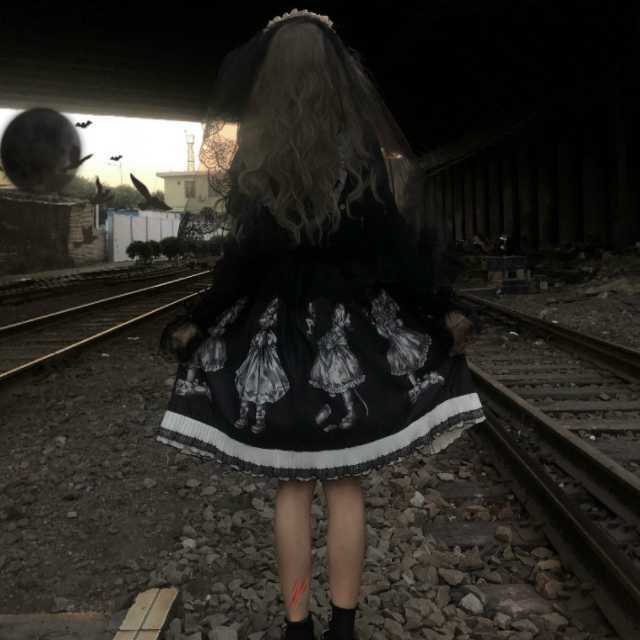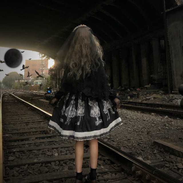ダークな世界観が広がったデザインのスカートはゴスロリファッションにぴったり。