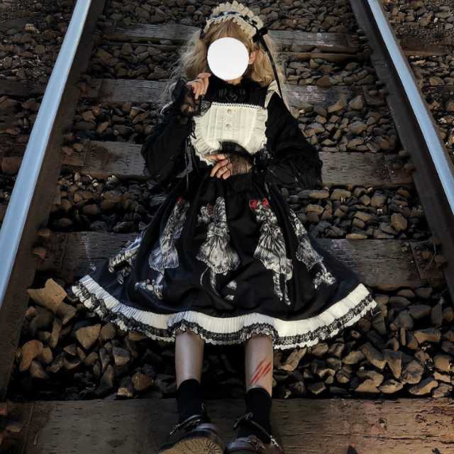 ワンピース ロリータ ロリータワンピース ゴスロリ カジュロリ セットアップ レディース レース キュート 可愛い プリンセス ロリータ風ワンピ クラシカル ミディアム丈 ヘッドドレス 長袖 レース 夢かわ