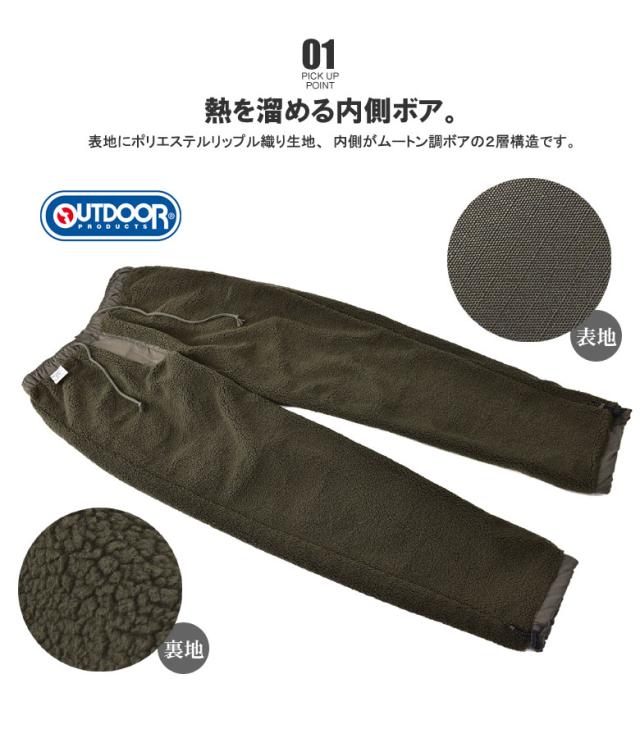アウトドアプロダクツ OUTDOOR カーゴパンツ メンズ 暖かいパンツ 裏ボア ゆったり ボトムス 防寒対策 冬用【A2R】