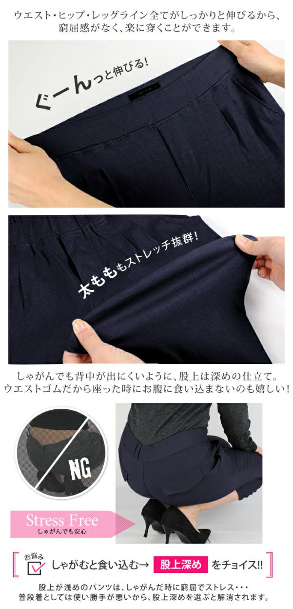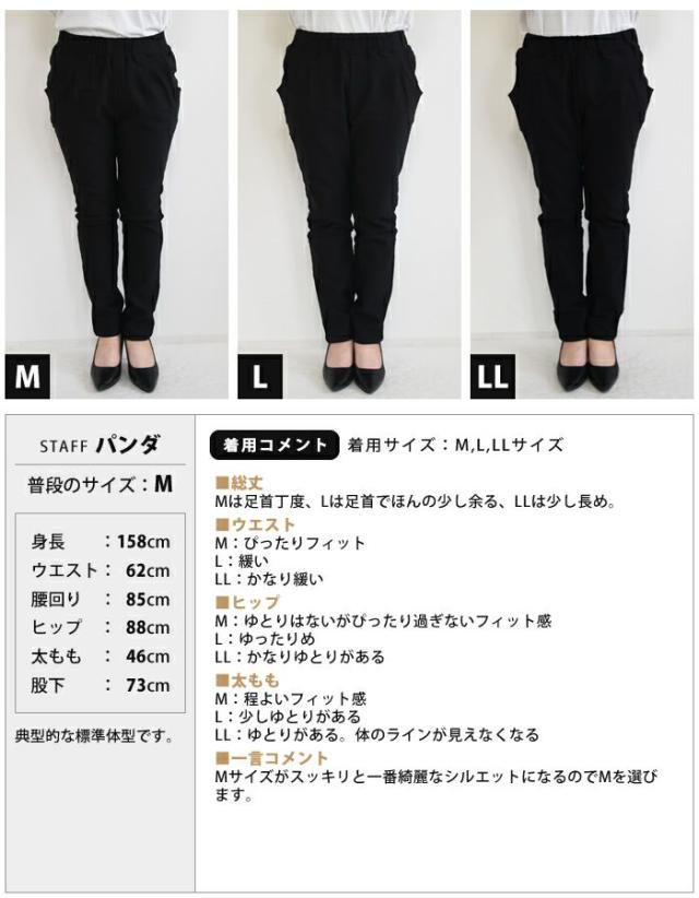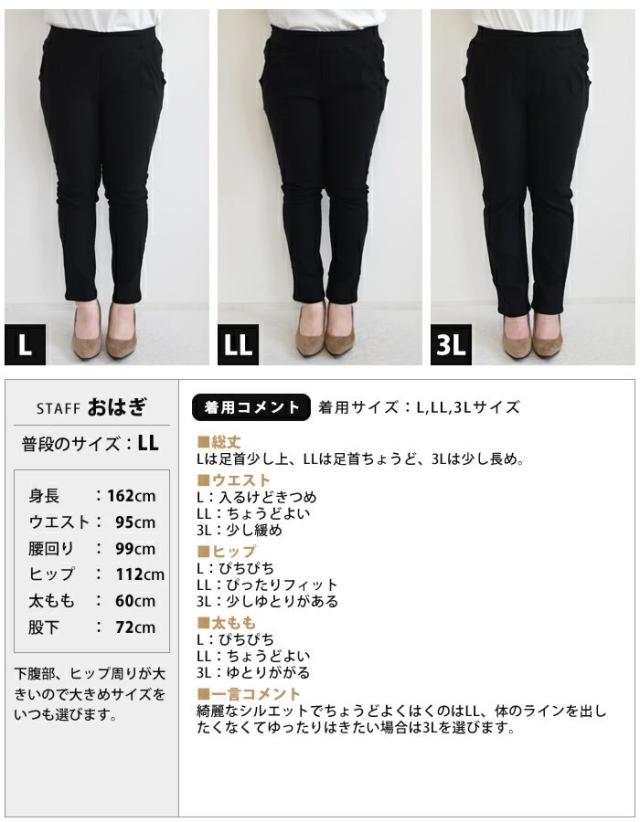 【3L】着丈:105cm ウエスト:82cm〜110cm ヒップ:104cm わたり幅:30cm 股下:75cm