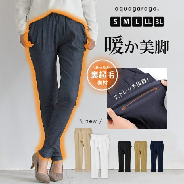 ≪ゆうメール便配送30・代引不可≫ 裏起毛ストレッチパンツ レディース 秋 冬 S M L LL 3L | アクアガレージ aquagarage
