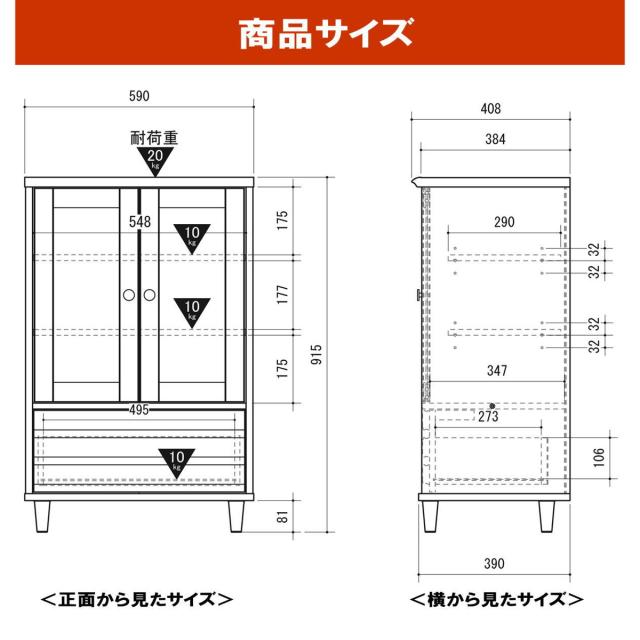 [耐荷重](天板)20kg・(棚板)10kg・(引き出し)10kg