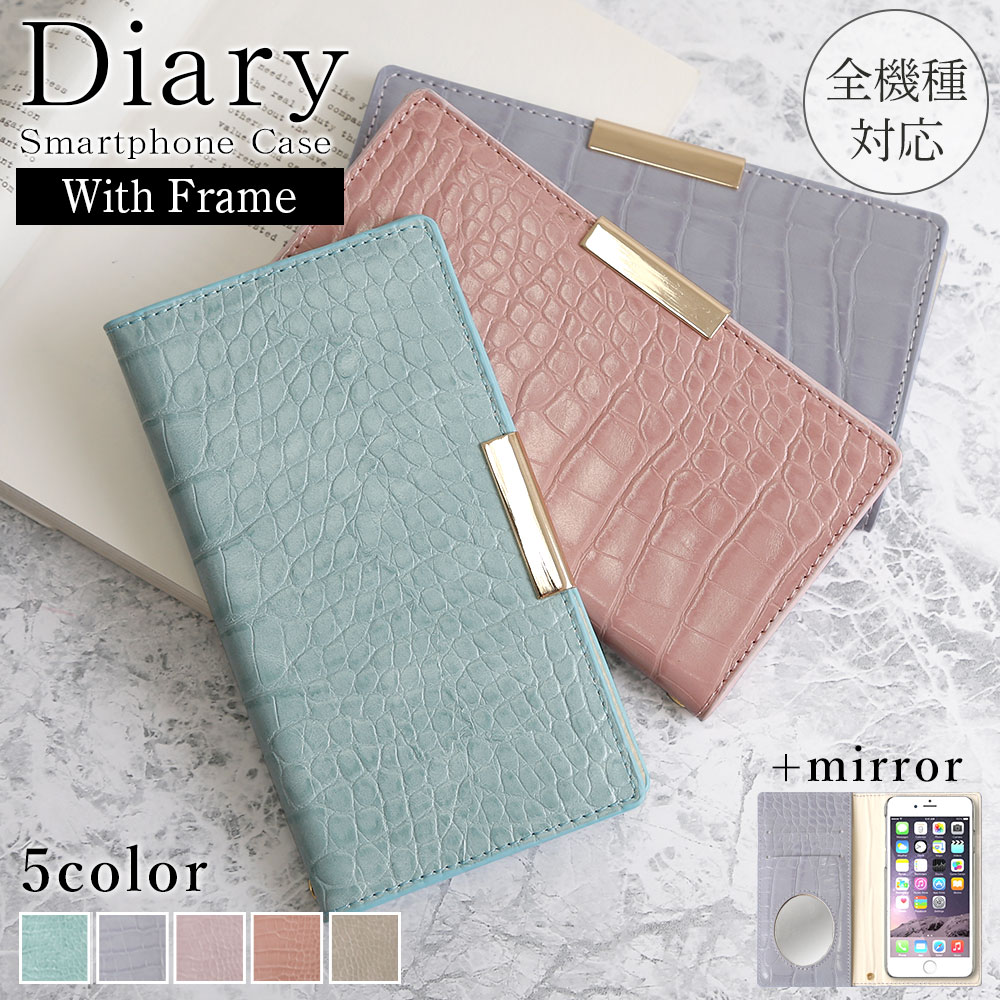クロコ調の高級感のある女性らしい手帳型ケースが全5色×ゴールドフレーム