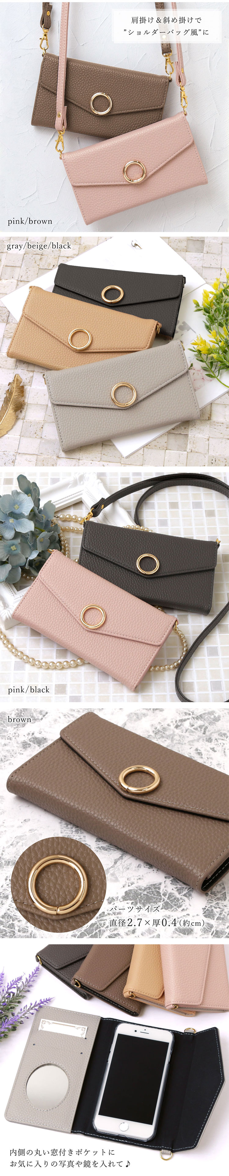 レター型ショルダータイプの手帳型ケースが全5色!×クールでおしゃれなゴールドラウンド!